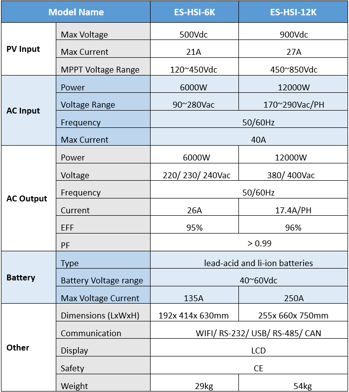 ES-HSI Series: 6kW & 12kW Single/Three Phrase Energy Storage Inverters